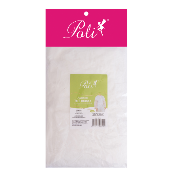 Avental TNT 20g com Manga Punho Elástico Branco 5 un Poli